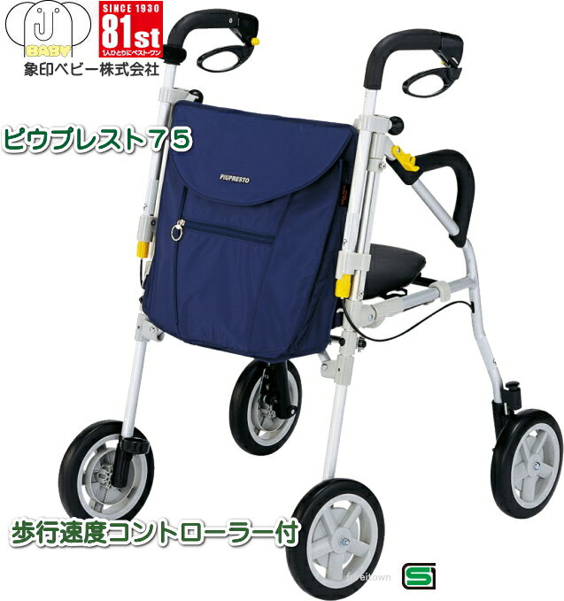 【クーポンで500円引】 シルバーカー(歩行補助車)【送料無料】 象印ベビー 象印ベビー製ピウプレスト75 【手押し車 老人用 押し車】 【介護】【敬老の日】 紺 度コントローラ付歩行車送料無料 SPL%OFF
